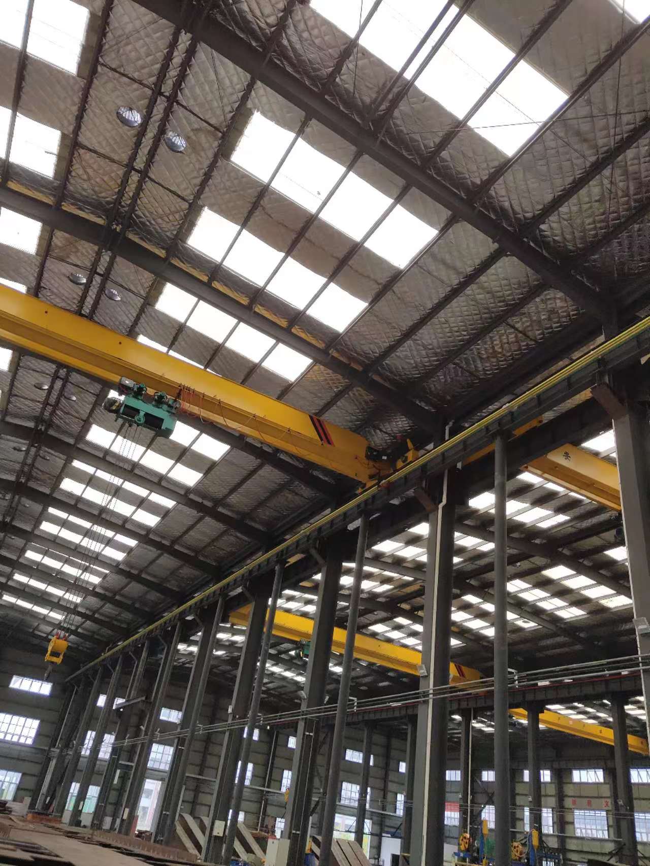 電動(dòng)單梁起重機(jī)由鋼板與工字鋼組焊成的主梁、端梁、電動(dòng)葫蘆及運(yùn)行機(jī)構(gòu)組成,電動(dòng)葫蘆沿主梁工字鋼下翼緣運(yùn)行,完成物品的吊運(yùn)工作,具有結(jié)構(gòu)輕巧、安裝維護(hù)方便等特點(diǎn),廣泛應(yīng)用于工廠、倉(cāng)庫(kù)、料場(chǎng)等不同場(chǎng)合吊運(yùn)貨物,禁止在易燃、易爆、腐蝕性介質(zhì)環(huán)境中使用。工作級(jí)別為A3-A5。操作方式設(shè)有地面手柄、無(wú)線遙控和司機(jī)室三種操作形式。駕駛室有開(kāi)式、閉式兩種。大車運(yùn)行采用分別驅(qū)動(dòng)形式,錐型電機(jī)制動(dòng),開(kāi)式齒輪傳動(dòng)。
